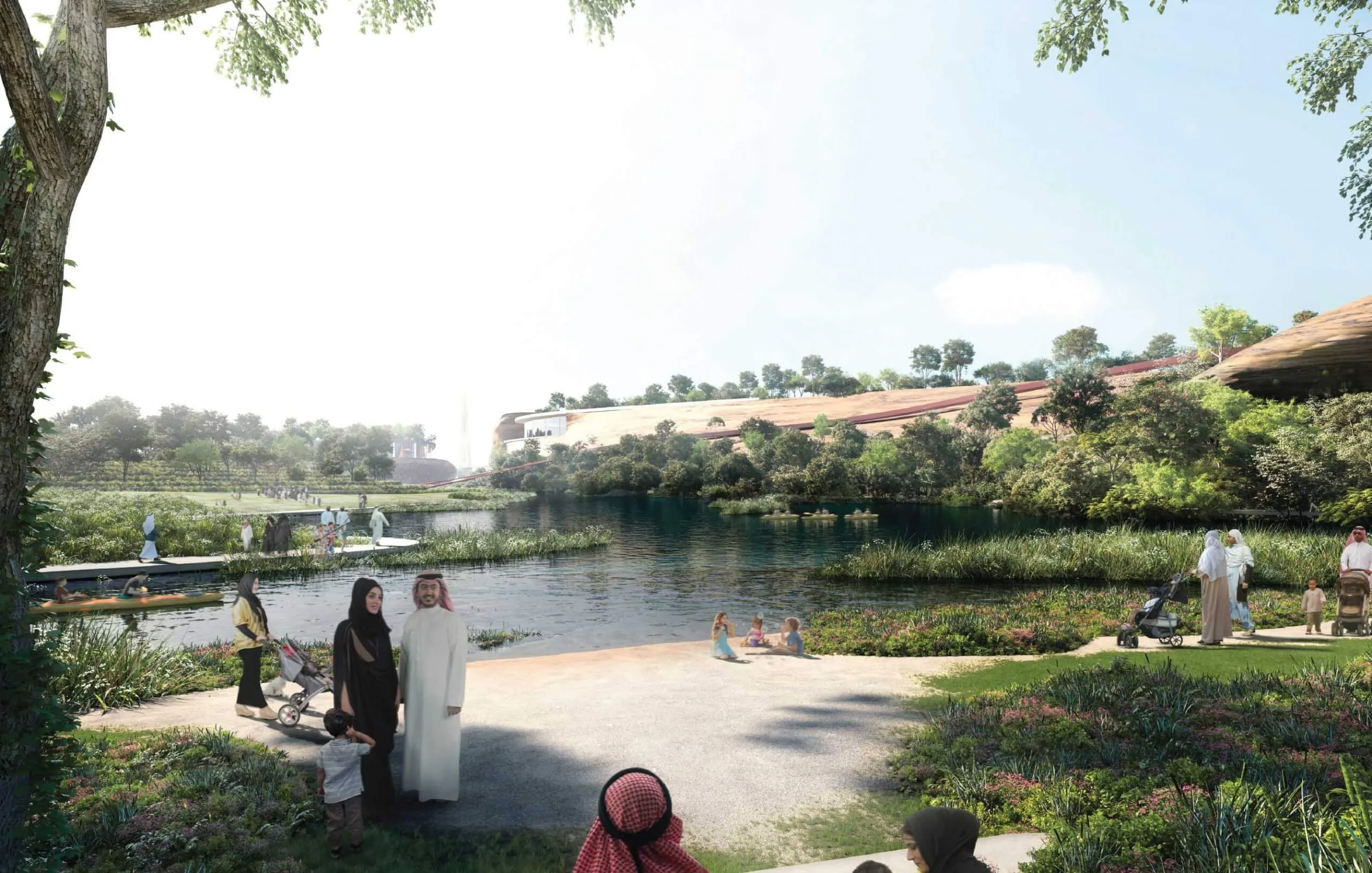 King Salman Park spans over 16 square kilometers, making it the largest urban park in the world. It offers a wide range of high-quality activities and experiences for residents and visitors, featuring extensive green spaces with more than one million trees, open plazas covering over 11.6 square kilometers, the Royal Arts Complex, the National Theater, a 7.2-kilometer circular walking trail, and the central ‘Valley’ area with various water features, artistic landmarks, and iconic installations. The park will play a significant role in increasing green coverage in the area and raising the per capita share of green spaces, directly and positively impacting environmental quality and climate.